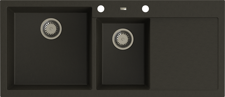 A-POINT 180 kétmedencés csepegtetőtálcás kivitelben, extra mély medencével, fekete-szemcsés, fekete, bézs, fehér és szürke színekben. Balos kivitelben használható. Az A-POINT 180 kétmedencés csepptálcás min. 80 cm széles szekrénybe építhető be.