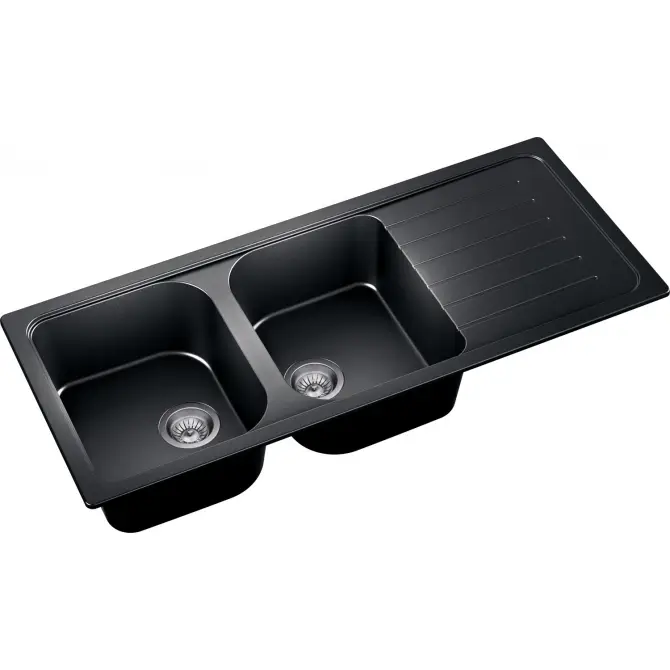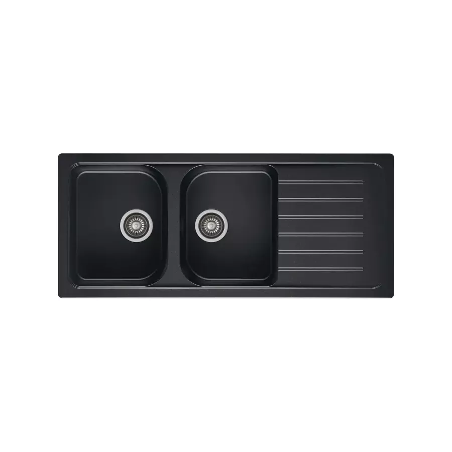A-POINT 200 kétmedencés csepegtetőtálcás gránit mosogató szifonnal, fekete-szemcsés fényes, megfordítható, beépíthetőParaméterek