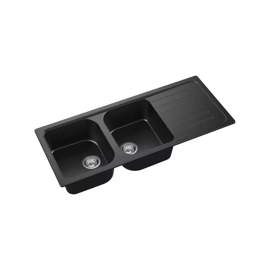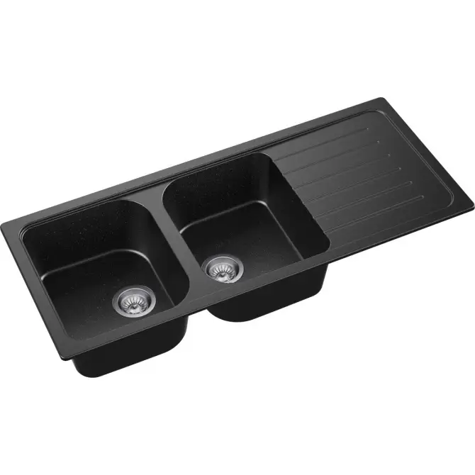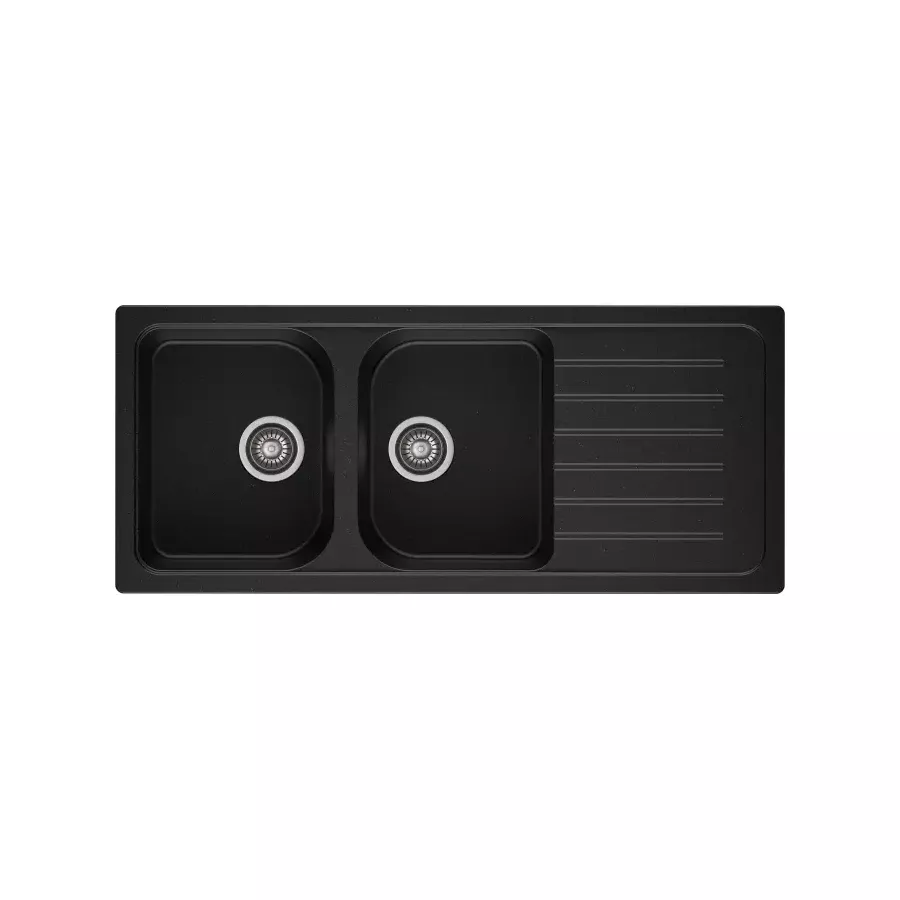 A-POINT 200 kétmedencés csepegtetőtálcás gránit mosogató szifonnal, fekete-szemcsés, megfordítható, beépíthetőParaméterek