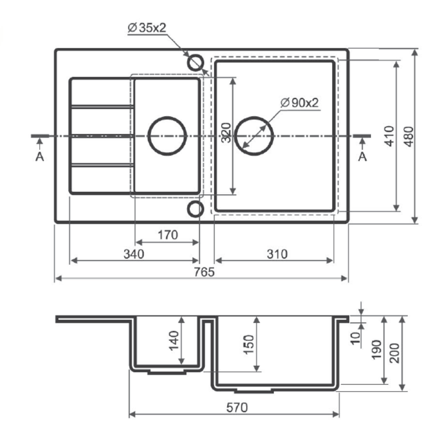 A AVIGNON másfél medencés (gyümölcsmosós) gránit mosogató alapból két előre kifúrt lyukkal érkezik raktárunkba, egy a csaptelepnek a másik az automata dugóemelőnek, igény szerint kérhető extra lyuk a folyadékadagoló számára. A gránit mosogatók tisztítása nagyon egyszerű, felületük könnyen tisztán tartható, ehhez elegendő egy szivacs, és bármilyen a háztartásban megtalálható tisztítószerrel nedvesen letisztítani, (nem maró hatásúval!) majd papírtörlővel szárazra törölni.