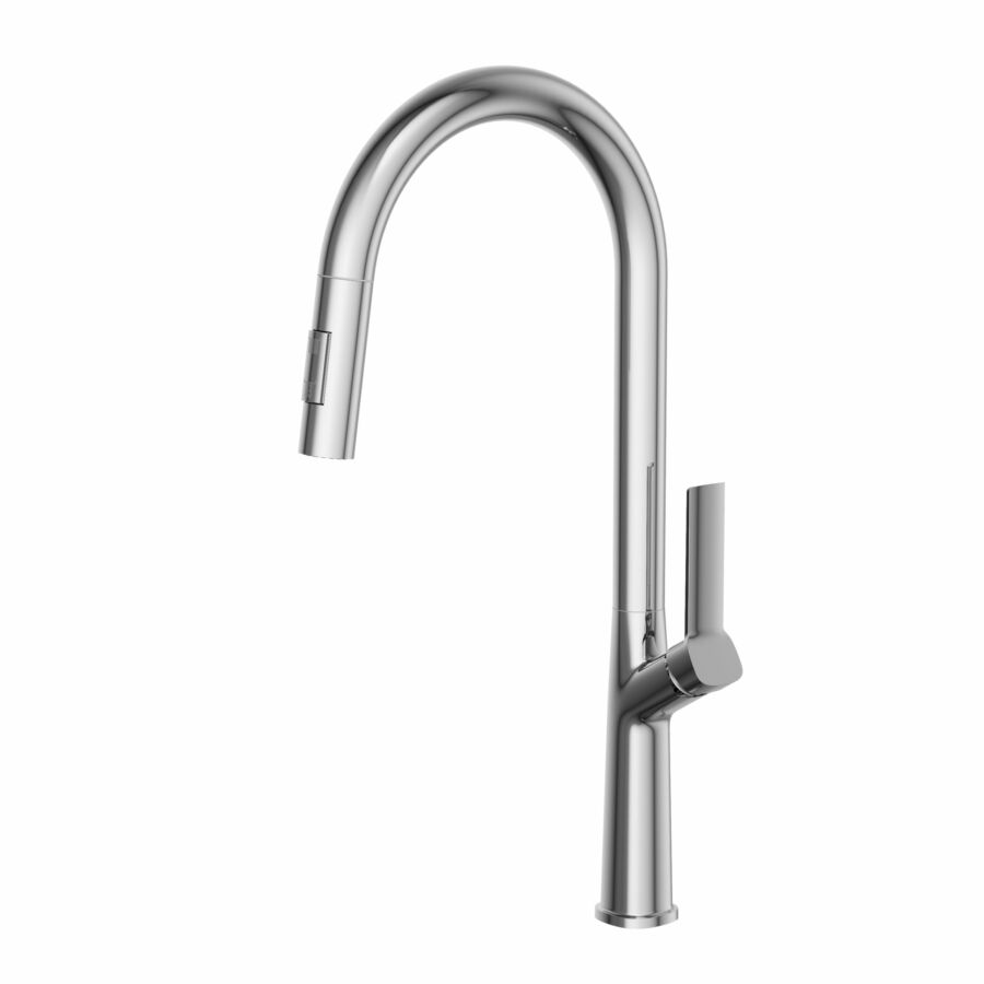 Az Awra konyhai csaptelep kihúzható kifolyóval és kettős funkciójú kézi szeleppel a modern dizájnt és a funkcionalitást ötvözi, hogy leegyszerűsítse a mindennapi konyhai feladatokat. A rugalmas, kihúzható kifolyóval ellátott vízsugár könnyen irányítható, így különösen hasznos nagy edények megtöltéséhez, zöldségek öblítéséhez vagy a mosogató tisztításához.