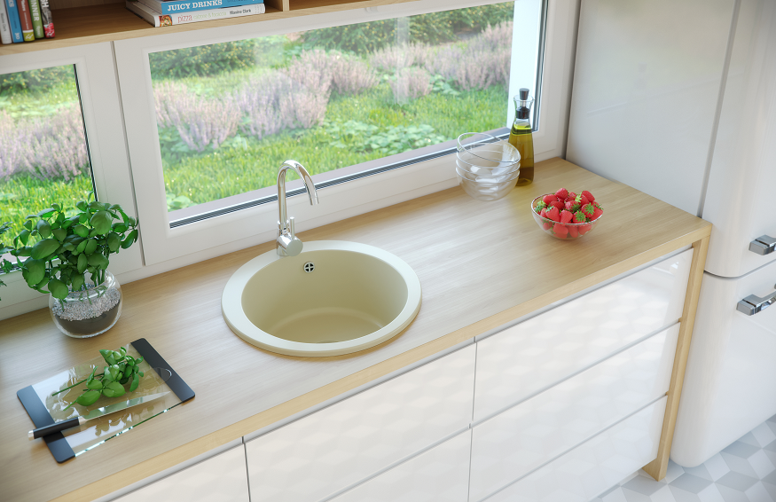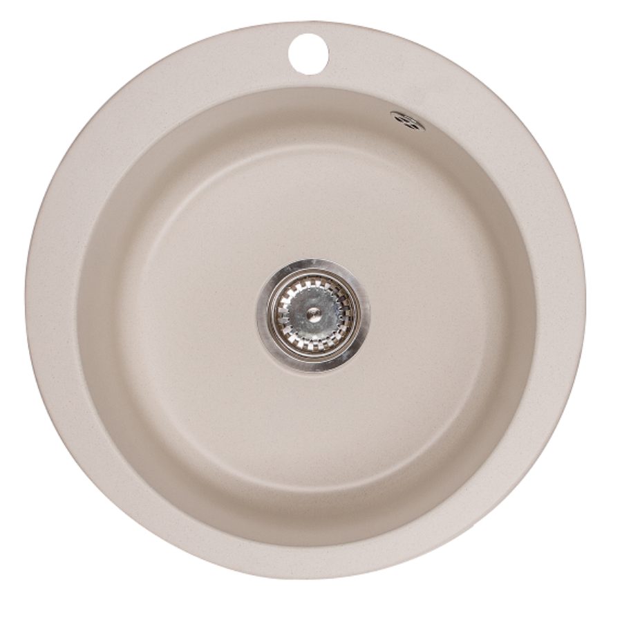 BELFORT egymedencés kör alakú gránit mosogató, csepptálcás kivitelben, extra mély medencével, fekete-szemcsés, fekete, bézs, fehér és szürke színekben. Jobbos és balos kivitelben is használható. A BELFORT egymedencés kör alakú gránit mosogató min. 50 cm széles szekrénybe építhető be.