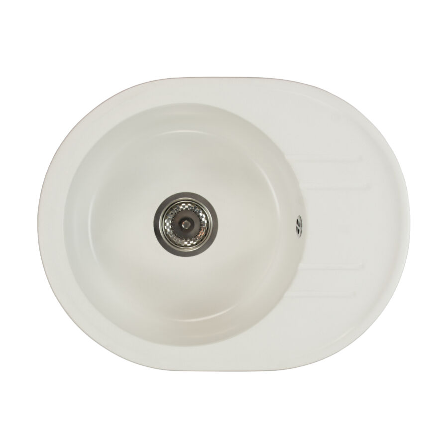 Egymedencés kör alakú csepptálcával ellátott gránit mosogató, amely ideális kis konyhákba, mély medencével, fekete, bézs, szürke, fehér, fekete-szemcsés színekben.
