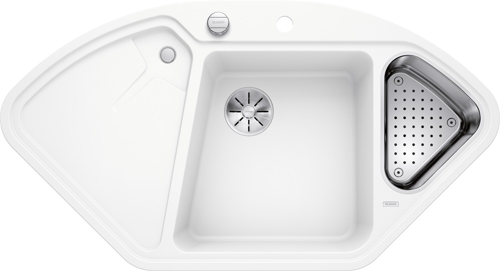 BLANCO DELTA II Silgranit másfél medencés csepegtetőtálcás sarok gránit mosogató, automata dugóemelő, szifonnal, fehér, beépíthetőParaméterek