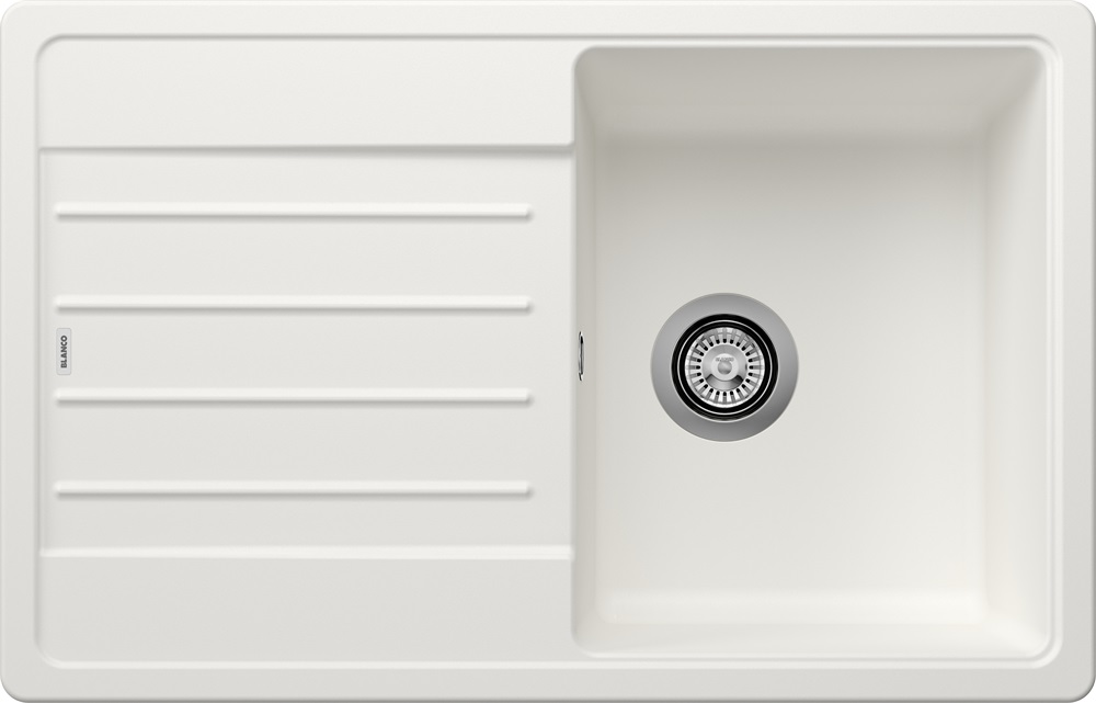 BLANCO LEGRA 45S Silgranit egymedencés csepegtetőtálcás gránit mosogató, szifonnal, fehér, beépíthető