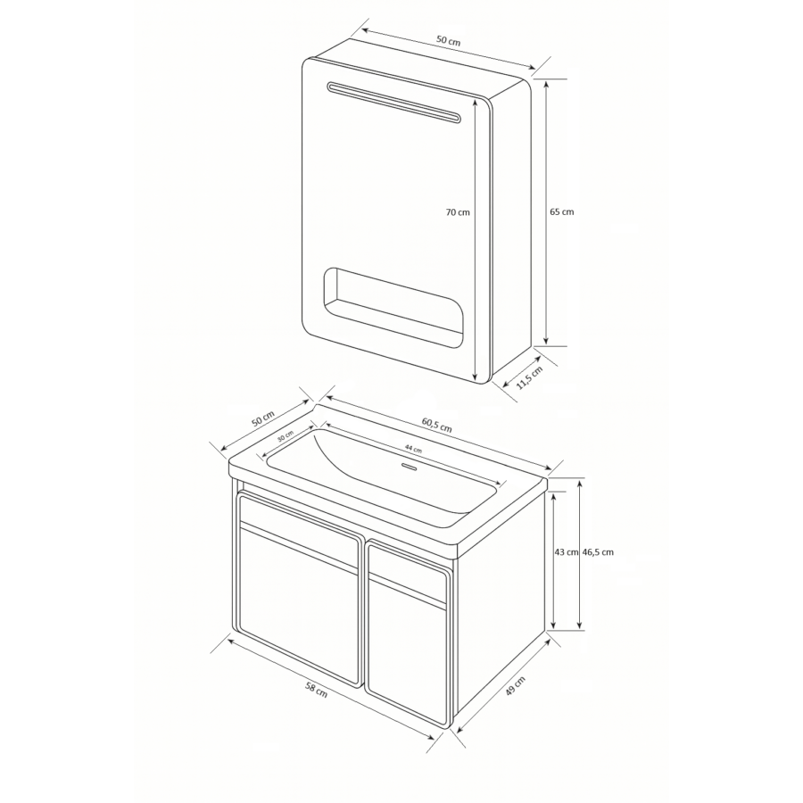 Alsó szekrény + mosdó műszaki adatai: