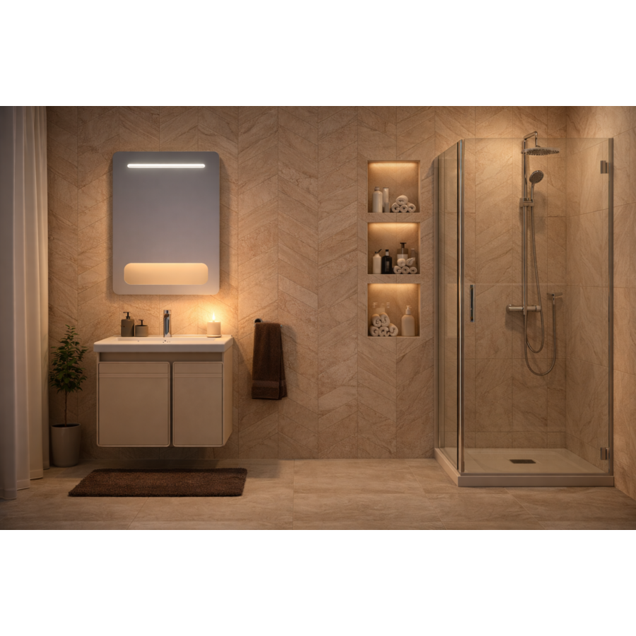 A készlet egy tágas felső szekrényből tükörrel, valamint egy alsó szekrényből, amely két funkcionális tárolórekesszel rendelkezik. Ennek köszönhetően könnyedén rendben tarthatod a fürdőszobát, és rendszerezheted az összes szükséges kiegészítőt.