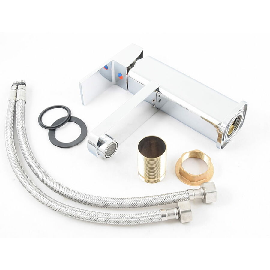 A csomag tartalma: csaptelep, bekötő csövek, tömítések, minden szerelvény, ami a bekötéshez szükséges