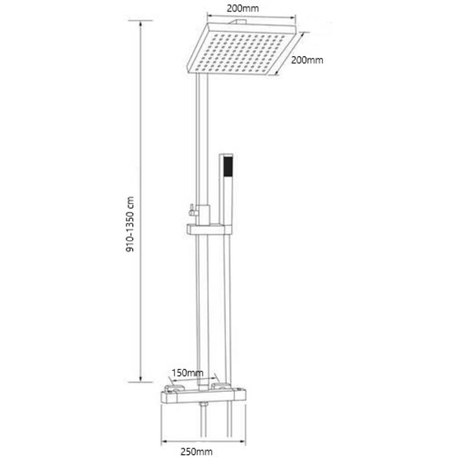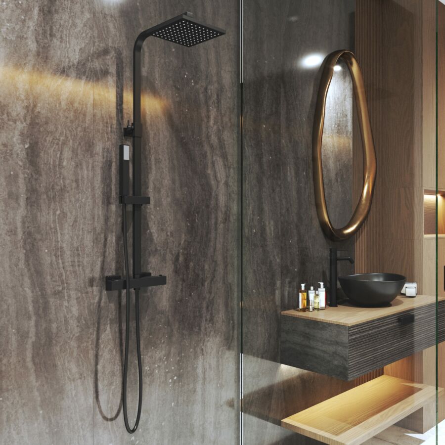 Cube termosztatikus esőztető zuhanyszett szögletes zuhanyfejjel fekete, beépíthetőParaméterek