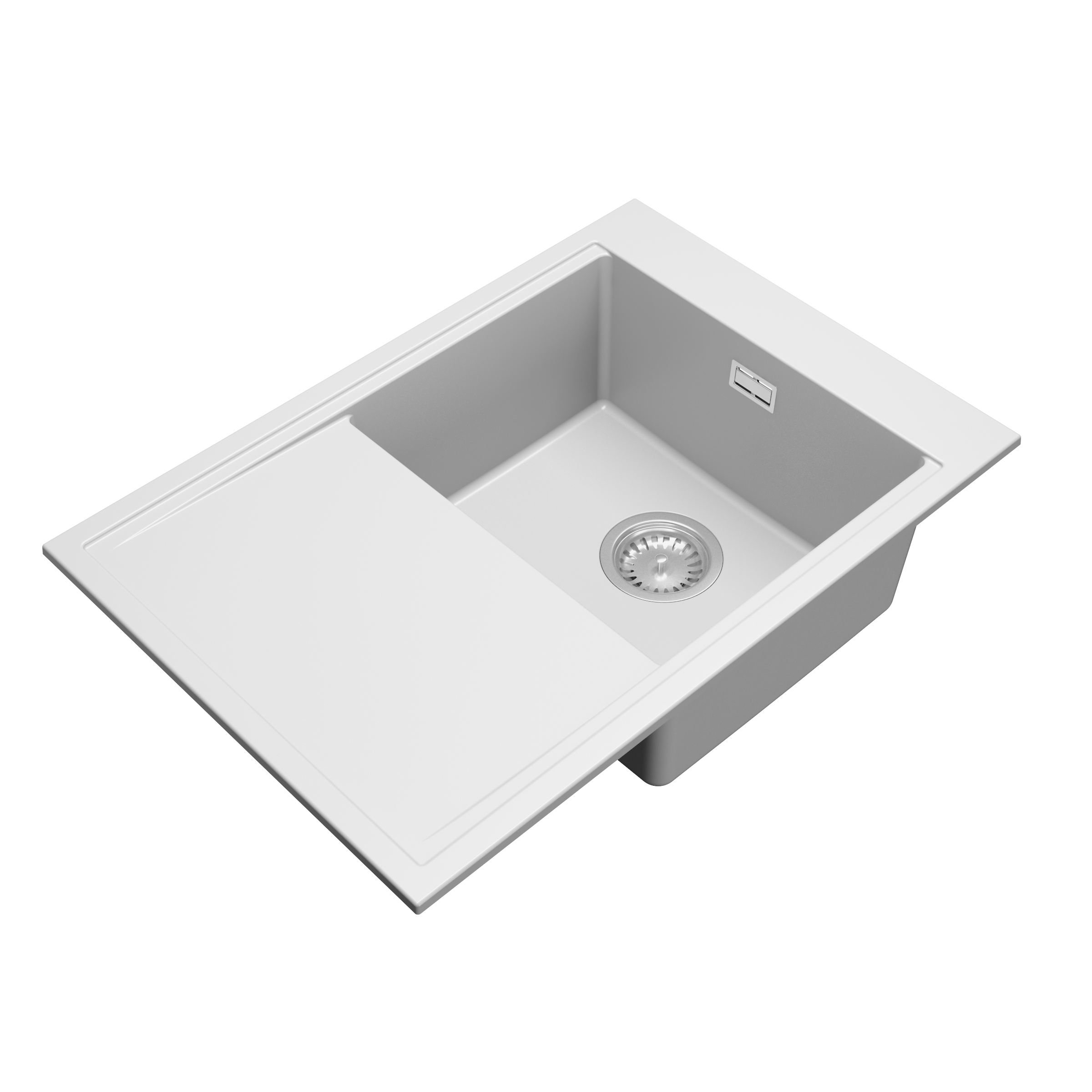 Design 7050 csepegtetőtálcás egymedencés gránit mosogató, manuális szifonnal, fehér színben