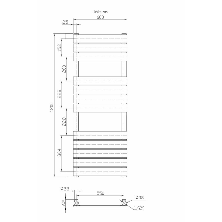 Design classic törölközőszárító radiátor 60cm x 120cm, fehérParaméterek