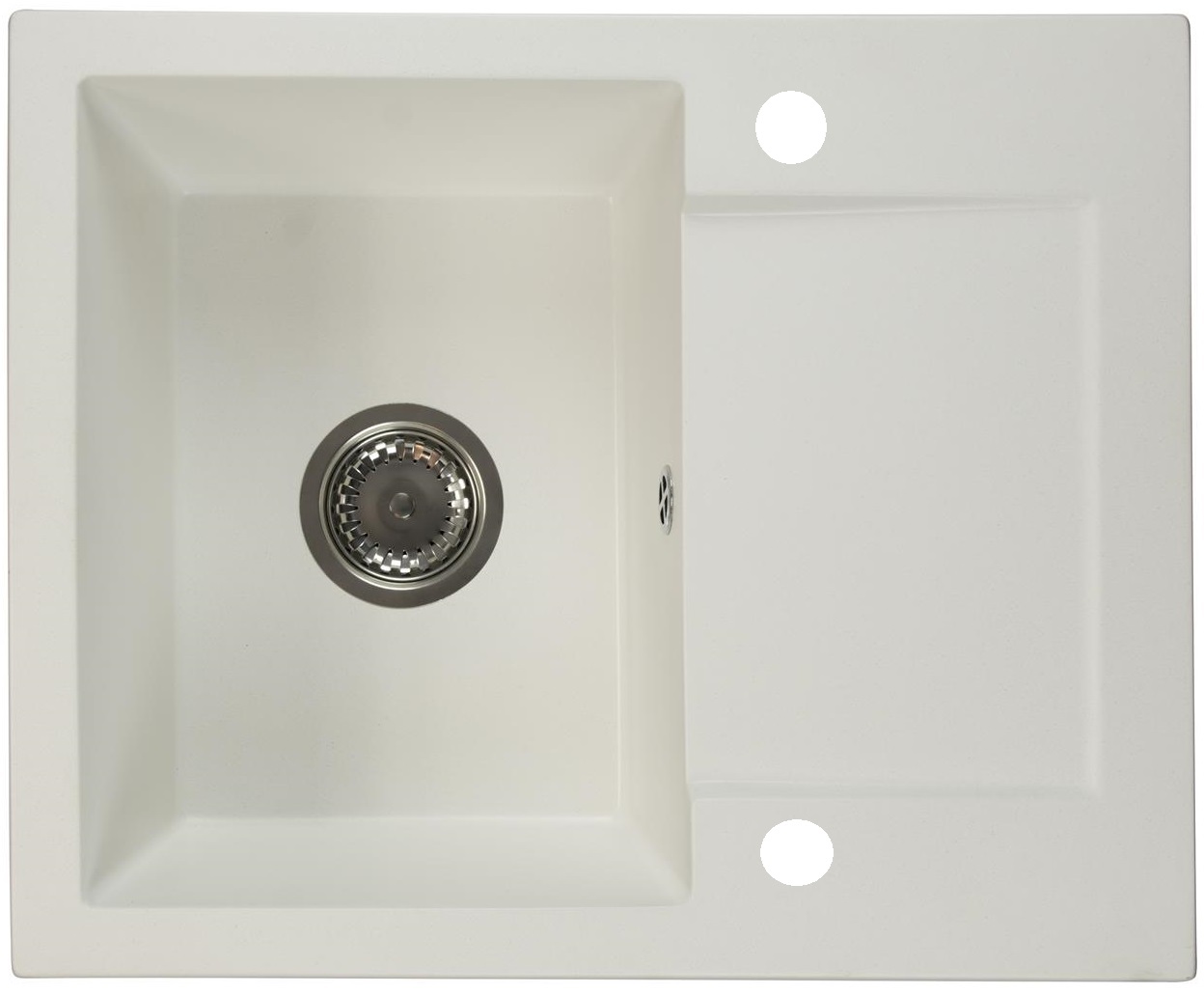 DONZO gránit mosogató automata szűrőkosaras leeresztővel, szifonkészlettel, csepegtető tálcával, fehér színben
