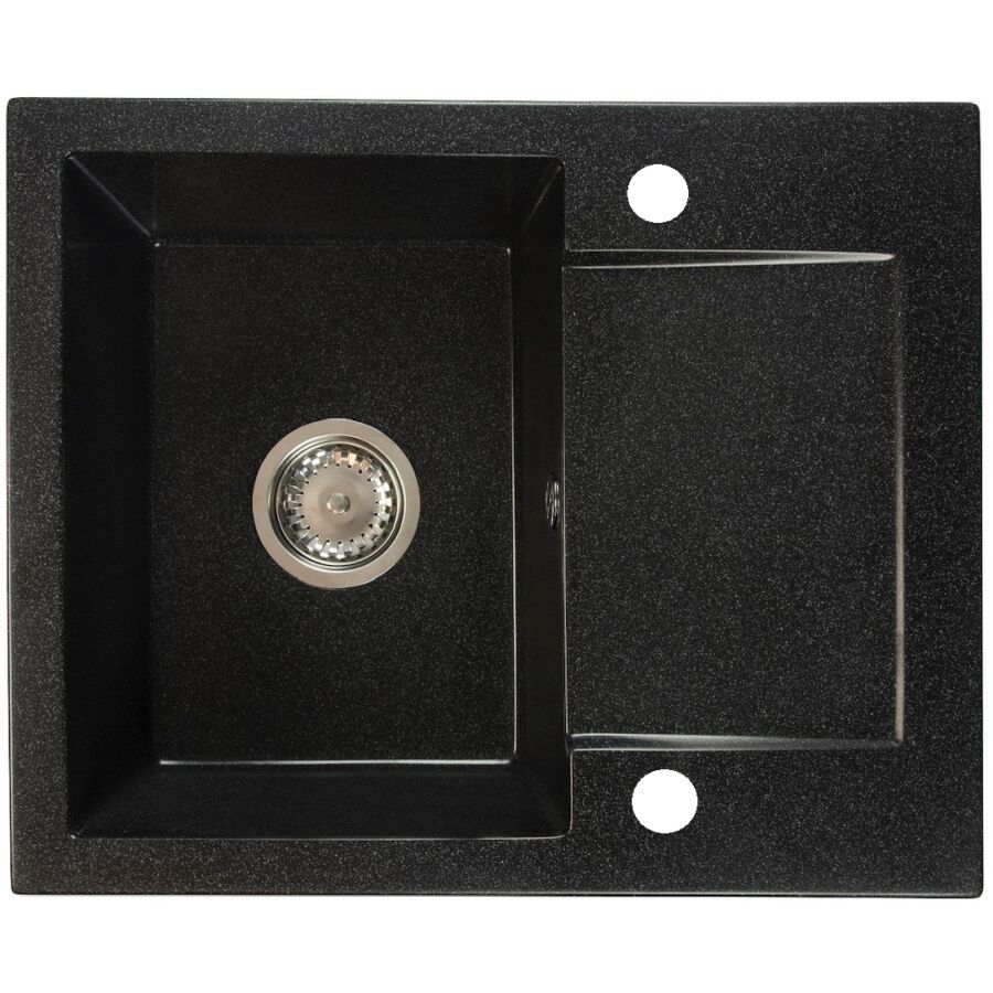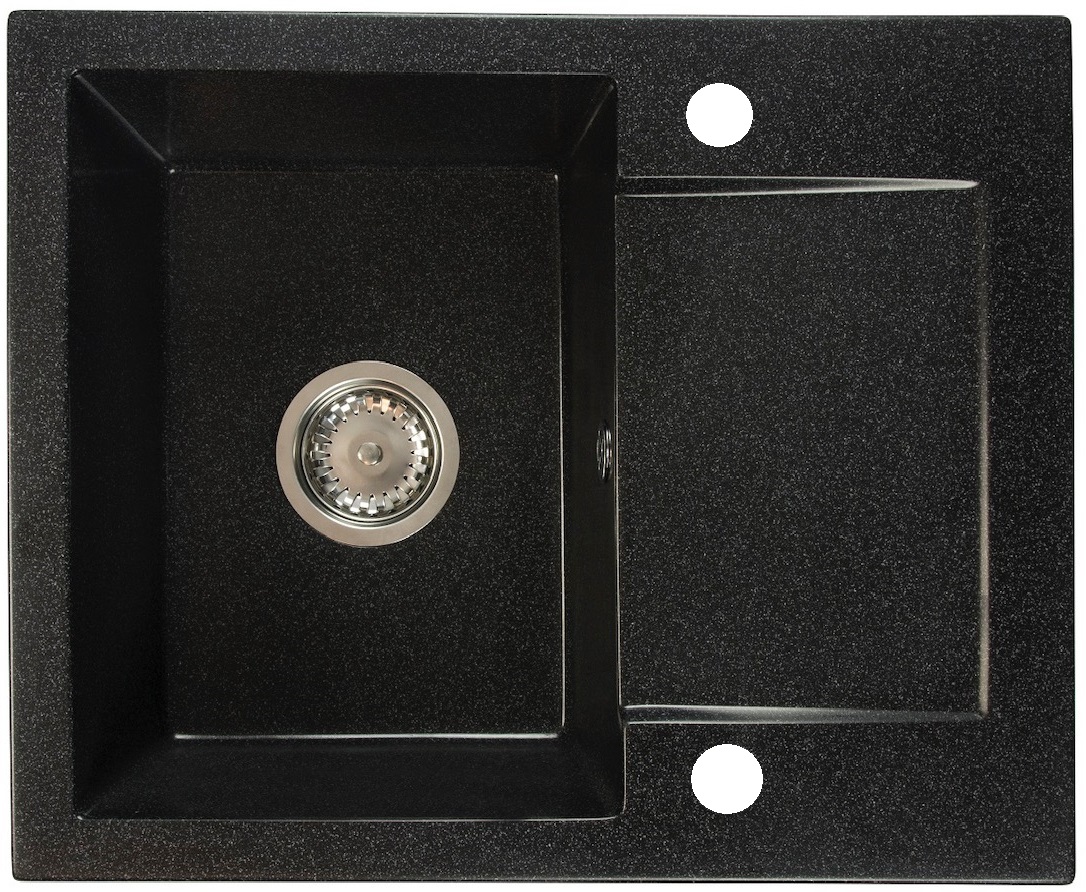 DONZO egymedencés csepptálcás gránit mosogató, csepptálcás kivitelben, közepesen mély medencével, fekete-szemcsés, fekete, bézs, fehér és szürke színekben. Jobbos és balos kivitelben is használható. A DONZO egymedencés csepptálcás gránit mosogató min. 45 cm széles szekrénybe építhető be.