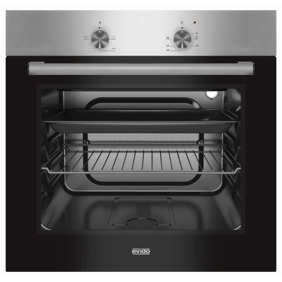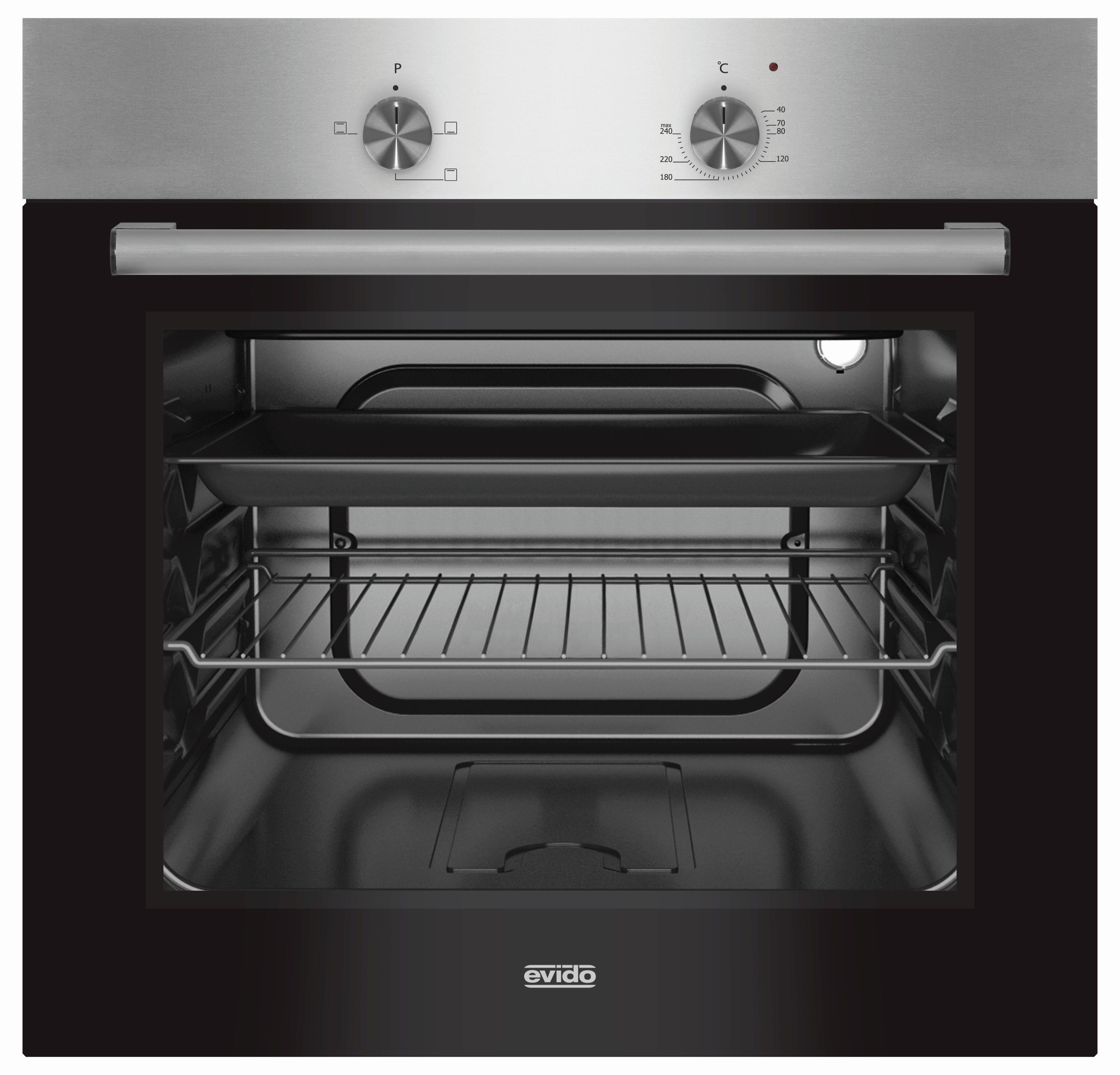 Az Evido statikus sütője könnyen tisztítható, az elülső részén található gombok és számlap leegyszerűsíti a használatát. Az inox acél kivitelezése stílusos megjelenést kölcsönöz a konyhának. Az üveg ajtó lehetővé teszi az ételek ellenőrzését anélkül, hogy kinyitnánk az ajtót, és a beépített világítás segít megkönnyíteni az ételek megfigyelését.