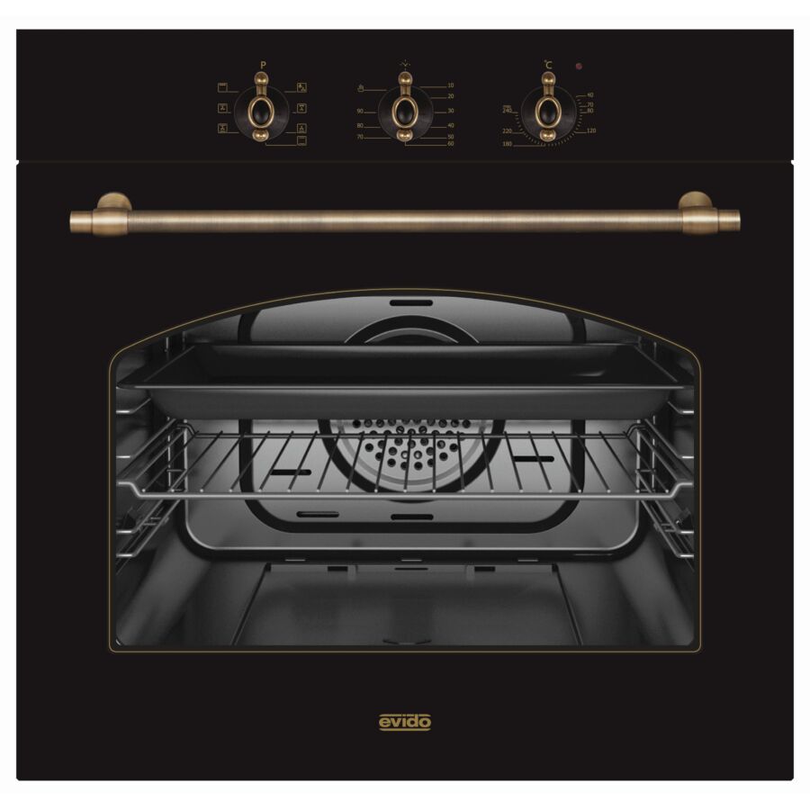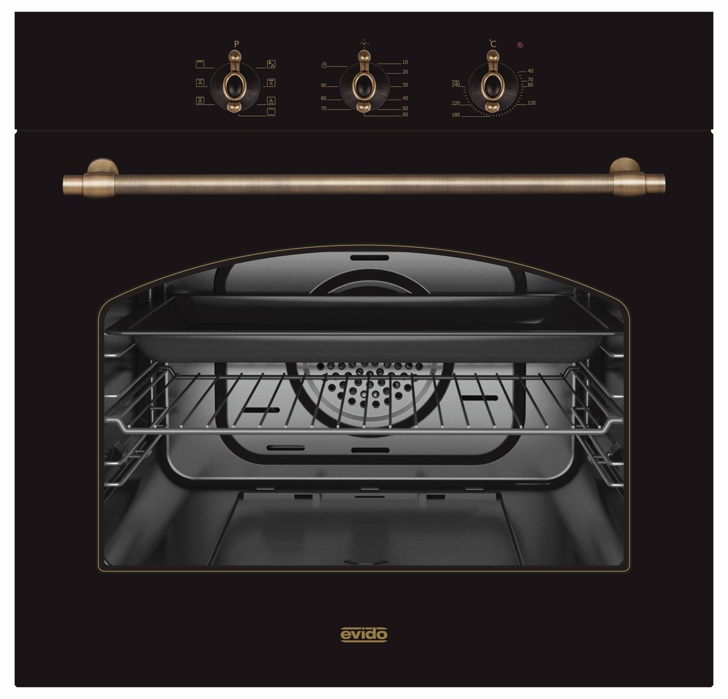 Az Evido multifunkciós sütője könnyen tisztítható, az elülső részén található gombok és számlap leegyszerűsíti a használatát. Az inox acél kivitelezése stílusos megjelenést kölcsönöz a konyhának. Az üveg ajtó lehetővé teszi az ételek ellenőrzését anélkül, hogy kinyitnánk az ajtót, és a beépített világítás segít megkönnyíteni az ételek megfigyelését.