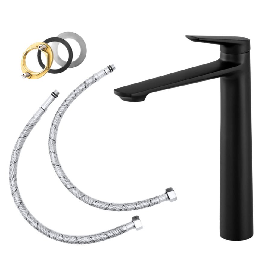 A csomag tartalma: csaptelep, bekötő csövek, tömítések, minden szerelvény, ami a bekötéshez szükséges