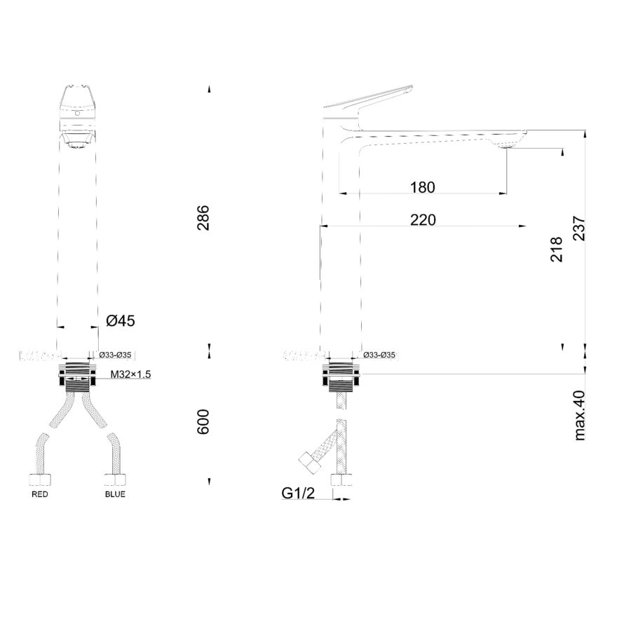 EVO magas mosdó csaptelep króm, beépíthetőParaméterek