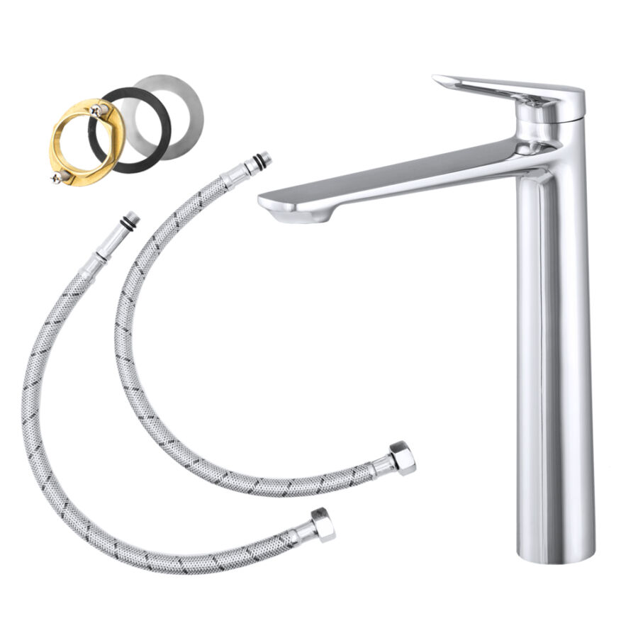 A csomag tartalma: csaptelep, bekötő csövek, tömítések, minden szerelvény, ami a bekötéshez szükséges