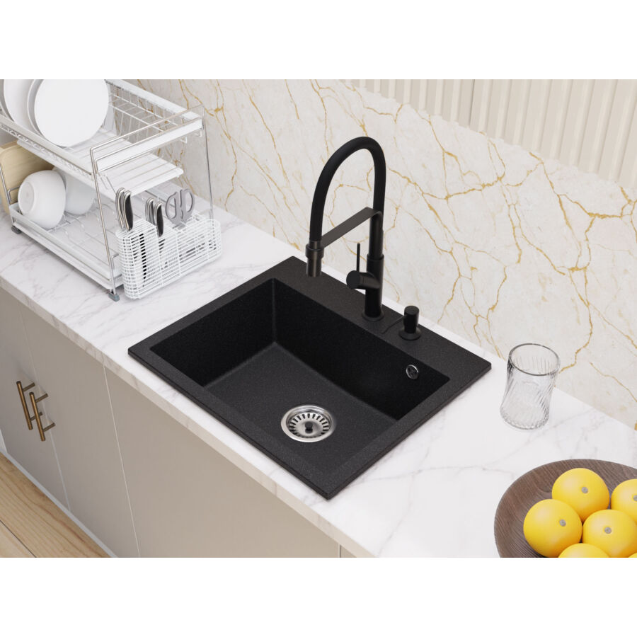Az Exclusive 55 egymedencés gránit mosogató, mély medencével, fekete, fekete-szemcsés, bézs, fehér és szürke színekben kapható.