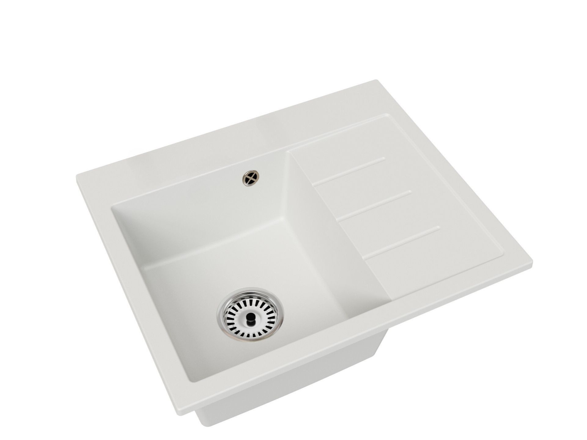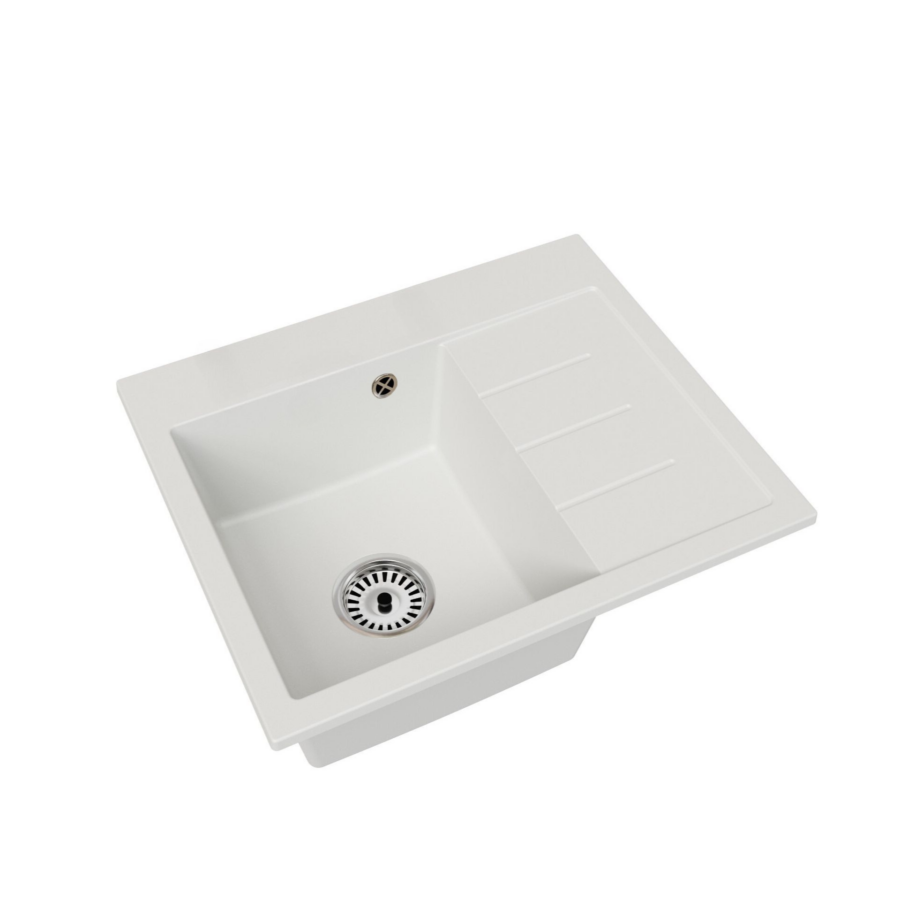 Exclusive 60 egymedencés gránit mosogató jobb oldalán csepegtetővel, szifonnal, fehér