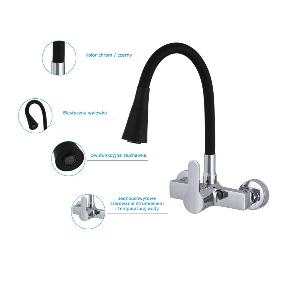 Flex 3000 konyhai FALI csaptelep fekete-króm, beépíthetőParaméterek