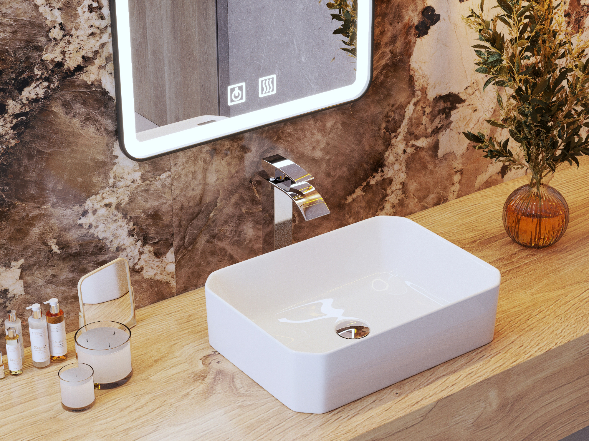 A Gamma Luka munkalapra helyezhető négyzet alakú mosdókagyló, amely illeszkedik a modern belsőépítészeti trendekhez. A munkalapra helyezve a fürdőszoba központi dekorációja lesz, különösen azért, mert érdekes formájával vonzza a figyelmet. A Gamma Luka négyzet alakú mosdó, mérete 500x365 mm. Mélysége 130 mm, így a víz nem fröccsen a munkalapra a mindennapi higiéniai tevékenységek során. A Gamma Luka mosdó, fehér színben tökéletes a kis és közepes méretű fürdőhelyiségekbe, fürdőszobákhoz.