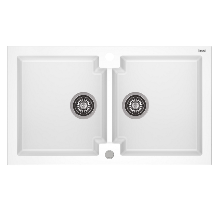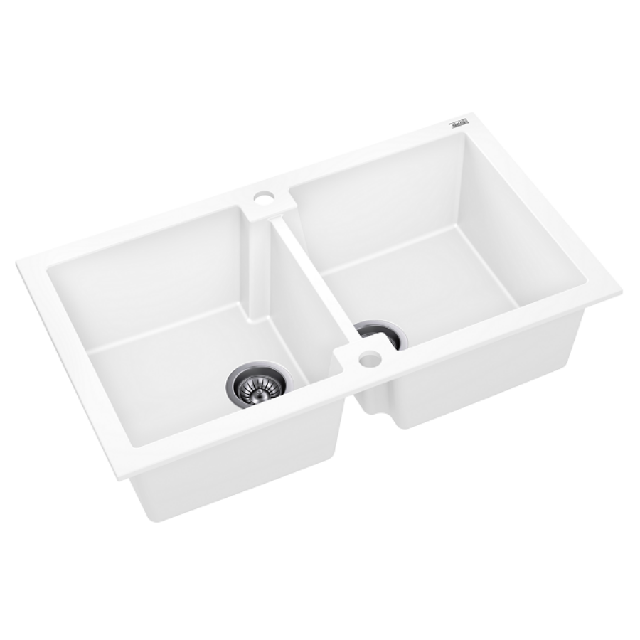 HONEST 160 kétmedencés gránit mosogató automata dugóemelő, szifonnal, fehér, beépíthetőParaméterek
