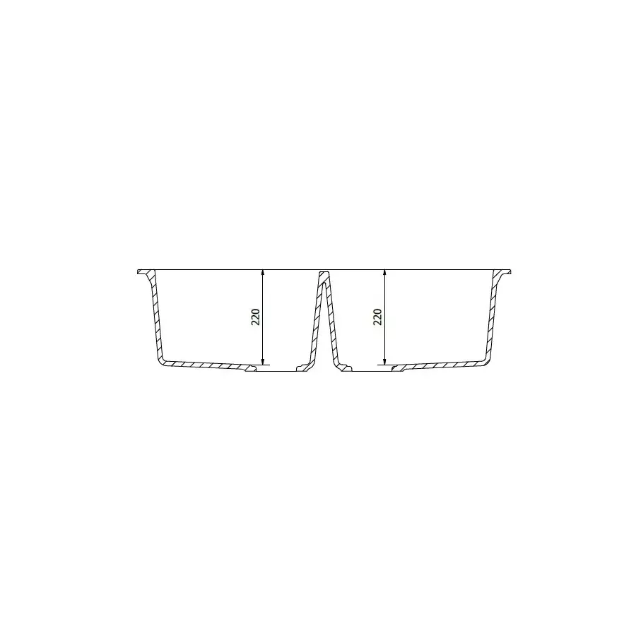 A mosogató mélysége: 220 mm