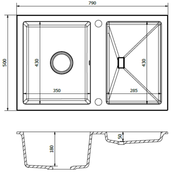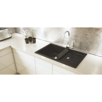 SLIDE 40 gránit mosogató automata dugóemelő, szifonnal, fekete, beépíthető