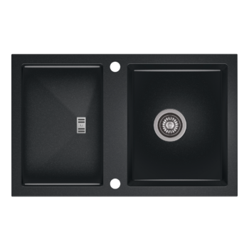 SLIDE 40 gránit mosogató automata dugóemelő, szifonnal, fekete-szemcsés fényes, beépíthető
