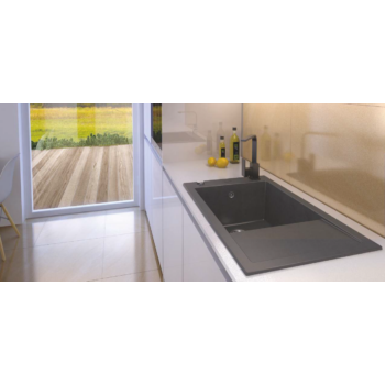 A-POINT 40 gránit mosogató automata dugóemelő, szifonnal, fekete-szemcsés, beépíthető