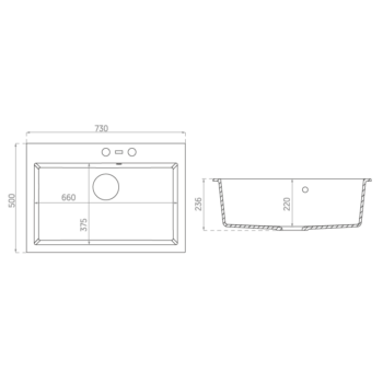 A-POINT 60 gránit mosogató automata dugóemelő, szifonnal, szürke, beépíthető