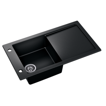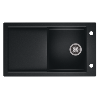 TRAMONTANA gránit mosogató automata dugóemelő, szifonnal, fekete-szemcsés fényes, beépíthető