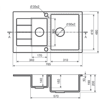 AVIGNON gránit mosogató automata dugóemelő, szifonnal, bézs, beépíthető