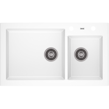 A-POINT 140 kétmedencés gránit mosogató automata dugóemelő, szifonnal, fehér, beépíthető