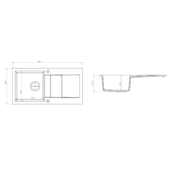 CASCADA 40 gránit mosogató automata dugóemelő, szifonnal, fekete-szemcsés, beépíthető