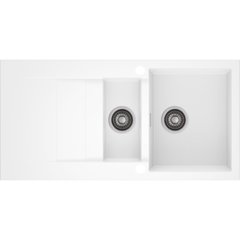 CASCADA 150 másfél medencés gránit mosogató automata dugóemelő, szifonnal, fehér, beépíthető