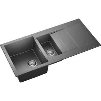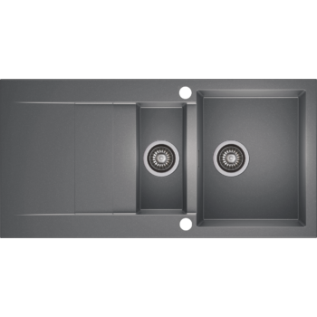 CASCADA 150 másfél medencés gránit mosogató automata dugóemelő, szifonnal, szürke, beépíthető