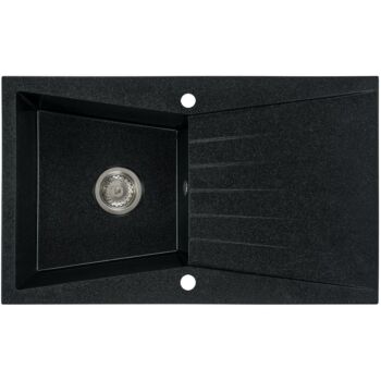 RUBIN gránit mosogató automata dugóemelő, szifonnal, fekete-szemcsés, beépíthető