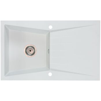 RUBIN gránit mosogató automata dugóemelő, szifonnal, fehér, beépíthető