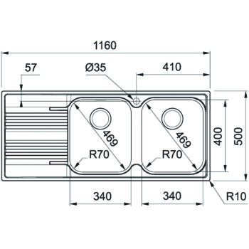 FRANKE SMART 621 inox kétmedencés csepptálcás mosogató, szifonnal, balos, beépíthető
