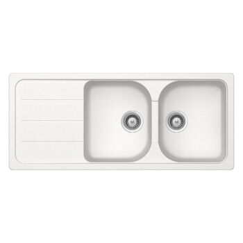 SCHOCK Formhaus D-200 Cristalite Alpina kétmedencés csepegtetőtálcás gránit mosogató, szifonnal, fehér, beépíthető