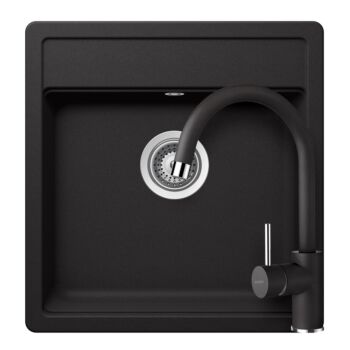SCHOCK Nemo N-100S Cristalite Nero egymedencés gránit mosogató szett, Schock Plutos csaptelep, fekete, beépíthető