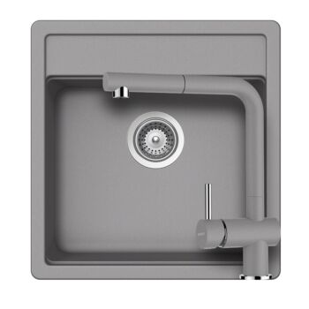 SCHOCK Nemo N-100S Cristalite Croma egymedencés gránit mosogató szett, Schock Epos csaptelep, szürke, beépíthető