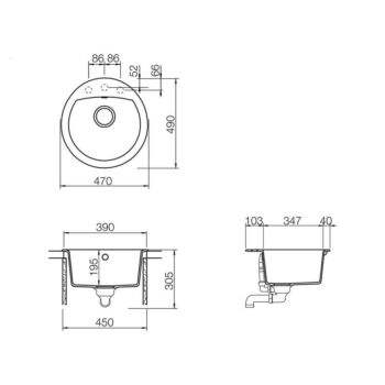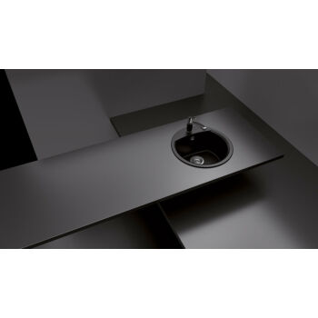SCHOCK Manhattan R-100 Cristalite Alpina egymedencés kerek gránit mosogató, szifonnal, fehér, beépíthető