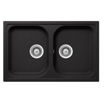 SCHOCK Viola N-200S Cristalite Nero kétmedencés gránit mosogató, szifonnal, fekete, beépíthető