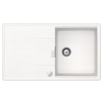 SCHOCK Tia D-100 Cristadur Polaris gránit mosogatótálca, automata szűrőkosras leeresztővel, szifonnal, fehér, beépíthető