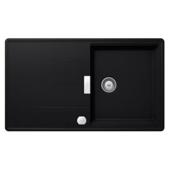 SCHOCK Tia D-100 Cristadur Puro gránit mosogatótálca, automata szűrőkosras leeresztővel, szifonnal, fekete, beépíthető