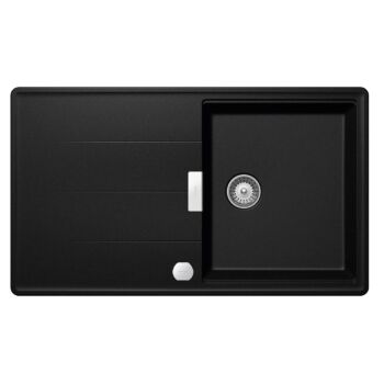 SCHOCK Tia D-100 Cristadur Magma gránit mosogatótálca, automata szűrőkosras leeresztővel, szifonnal, fekete-szemcsés, beépíthető