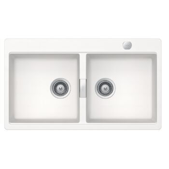 SCHOCK Horizont N-200 Cristadur Polaris kétmedencés gránit mosogató, automata szűrőkosár, szifonnal, fehér, beépíthető